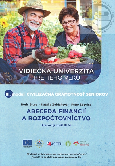 Názvové údaje Vidiecka univerzita tretieho veku. III. modul, Civilizačná gramotnosť seniorov. Pracovný zošit III./4, Abeceda financií a rozpočtovníctvo / [autori Boris Šturc, Natália Žoldáková, Peter Szovics] Autor-i Šturc, Boris, (aut.)
